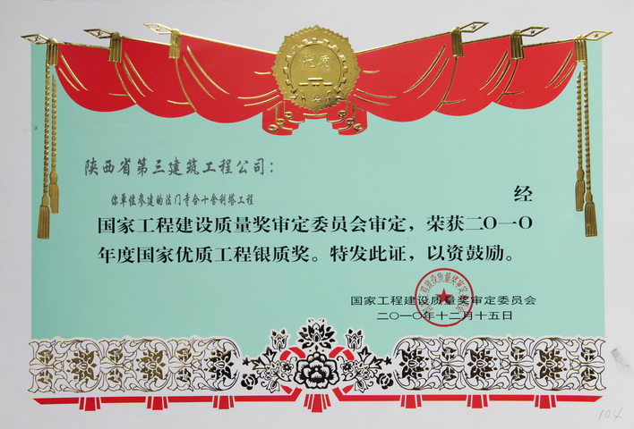 國家優(yōu)質(zhì)工程銀質(zhì)獎