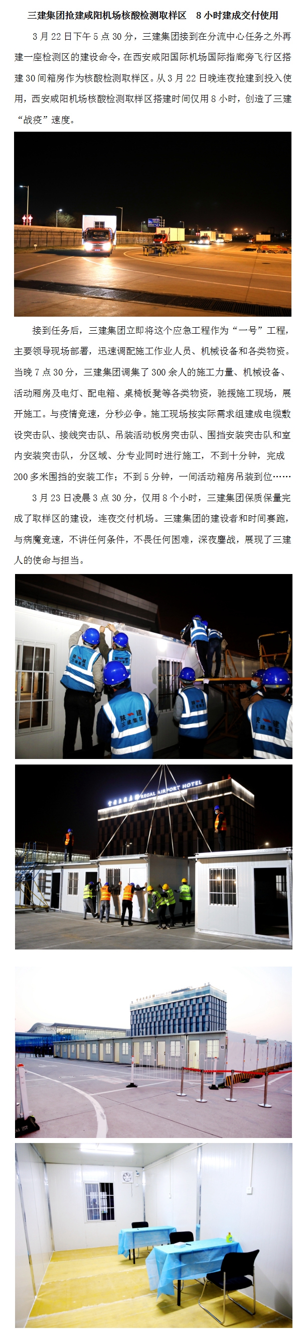 三建集團(tuán)搶建西安咸陽機(jī)場核酸檢測取樣區(qū) 8小時建成交付使用