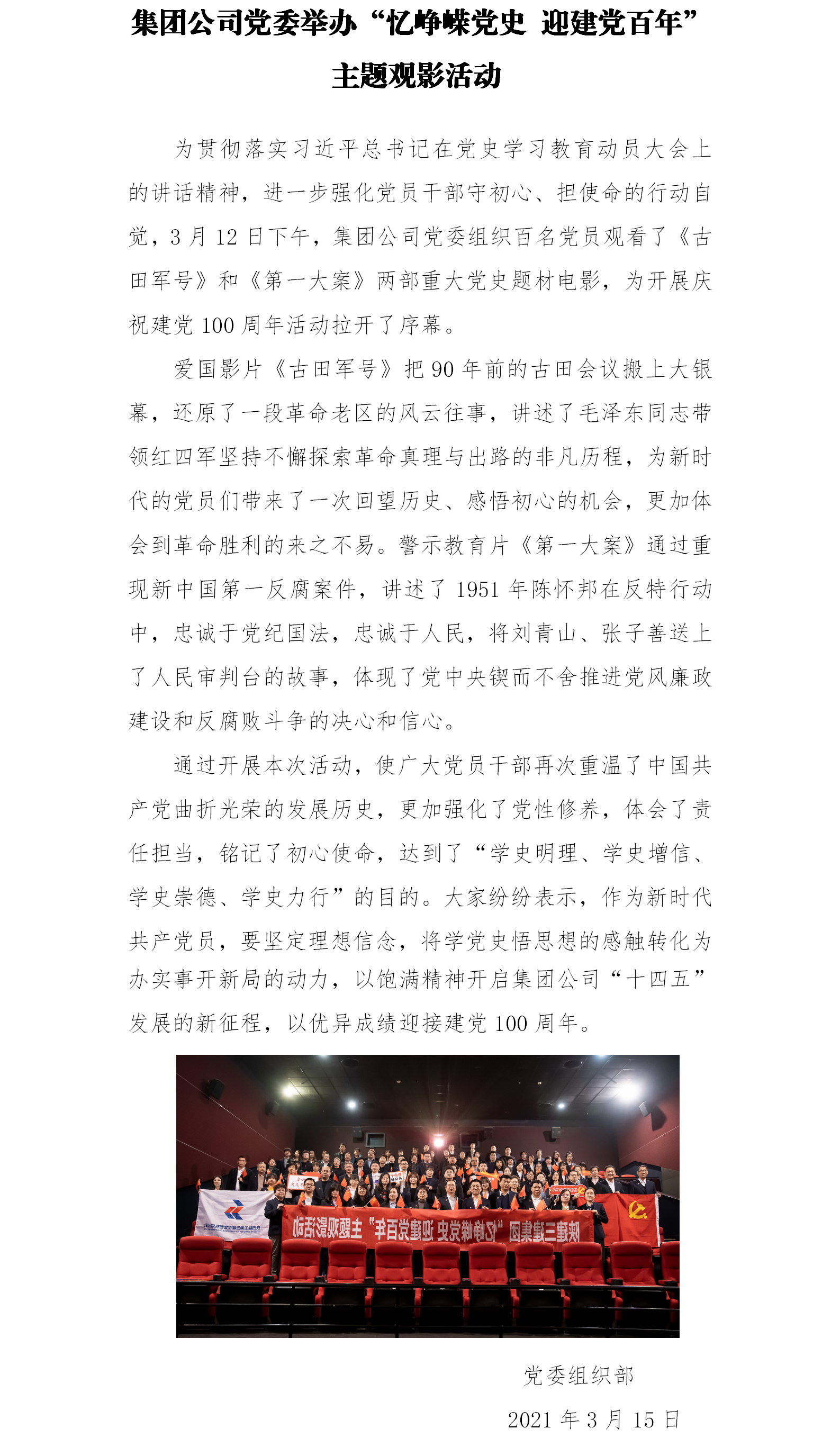 集團(tuán)公司黨委舉辦“憶崢嶸黨史 迎建黨百年”主題觀影活動(dòng)
