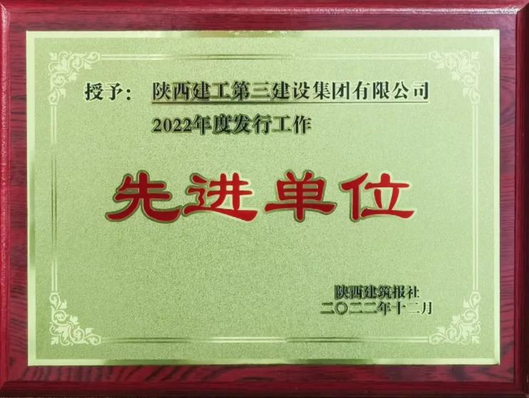 三建集團在會上被授予2022年度報紙發行工作先進單位;黨委宣傳部劉祥勝榮獲《陜西建筑報》優秀通訊員稱號,劉喜峰、劉祥勝撰寫的《圭峰山下競風流》榮獲第三屆“陜建好新聞”通訊類三等獎,安鐸拍攝的《陜建集團承建的西安國家版本館落成》榮獲攝影類二等獎;劉祥勝撰寫的《黨員老崔的四十年住房夢》榮獲陜建機施杯“喜迎二十大 建功新時代”主題征文比賽三等獎,王曉松撰寫的《奶奶的花布袋》榮獲優秀獎。