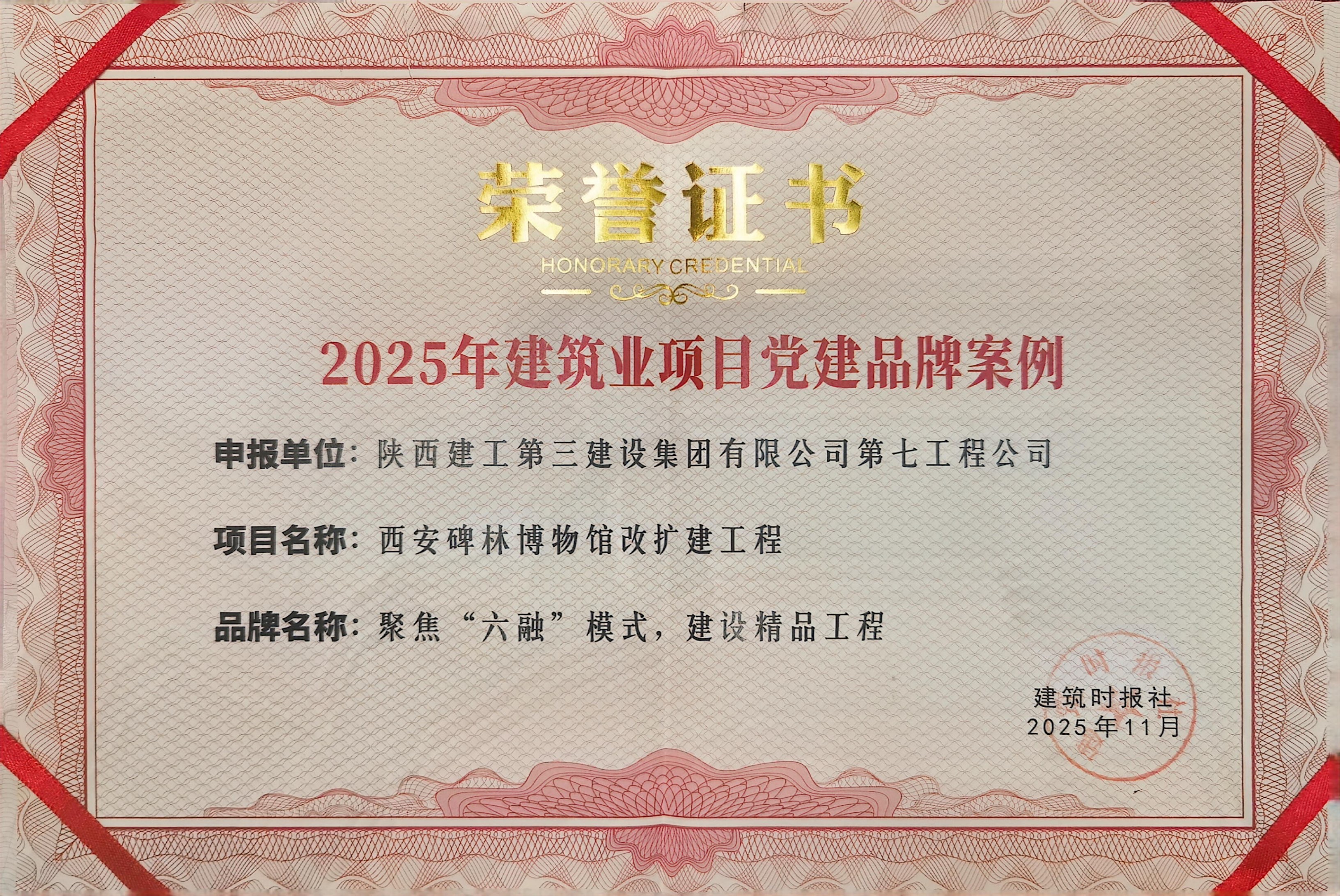 近日,建筑時報社正式印發《關于發布2025年建筑業企業文化傳播案例、建筑業項目黨建品牌案例、建筑業優秀出版刊物的決定》(滬筑社辦〔2025〕10號)。在本次全國范圍內的評選中,陜建三建集團第七工程公司以西安碑林博物館改擴建工程為實踐載體,申報的“聚焦‘六融’模式,建設精品工程”黨建品牌案例,從千余家建筑業申報單位的案例中突圍勝出,成功入選“2025年建筑業項目黨建品牌案例”,這也是項目繼工程建設品質獲省市級贊譽后,在黨建品牌建設領域收獲的國家級行業認可。