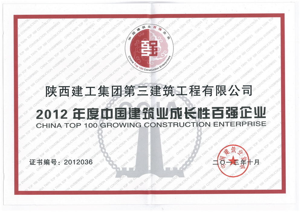 2012年度中國建筑業成長性百強企業